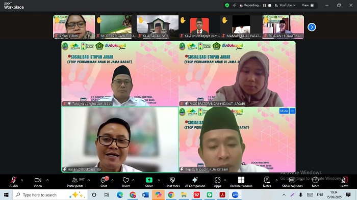 BANDUNG, MELESAT – Maraknya perkawinan anak, medorong sejumlah instansi mendorong ‘Gerakan Sadar Pencatatan Nikah’. Karena itu, Dinas Pemberdayaan Perempuan, Perlindungan Anak, dan Keluarga Berencana (DP3AKB) Jawa Barat menggelar Sosialisasi STOPAN melalui Zoom Meeting dan kanal YouTube, diikuti oleh lebih dari 3.600 peserta.