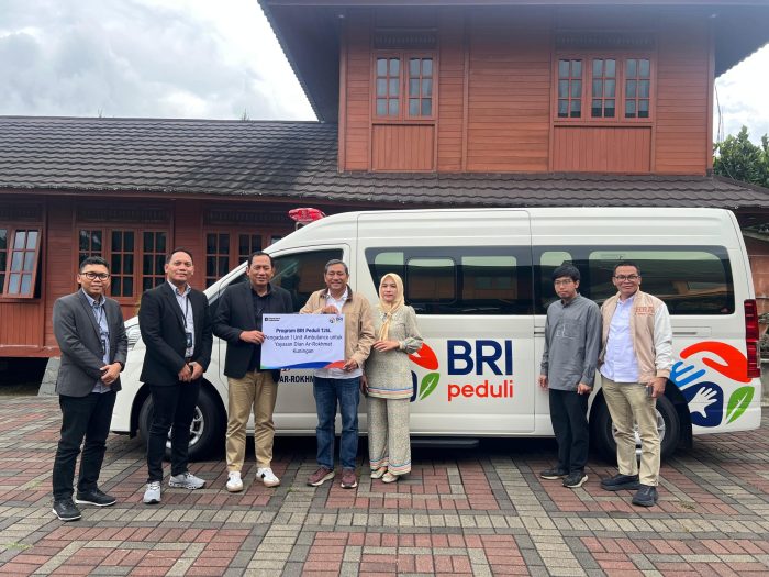 KUNINGAN, MELESAT – PT Bank Rakyat Indonesia (Persero) Tbk melalui program BRI Peduli kembali menunjukkan kepedulian dengan menyalurkan 1 unit Ambulance kepada Yayasan Dian Ar-Rokhmat Kuningan.
